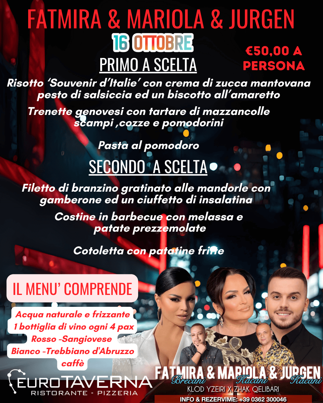 Eventi 16 Ottobre 2025 Vivi una notte magica con la voce straordinaria di Emanuel asllani ! Unisciti a noi per una festa indimenticabile!” FATMIRA BRECANI MARIOLA KACANI JURGEN KACANI Una grande serata di musica albanese In concerto live per voi prenotazioni 0362300046 Related Images: Post Correlati A cena con l’ Orchestra Italiana Bagutti Related Images: 14 Lug 2021 Il Venerdi di Eurotaverna Tutti i venerdì all’ Eurotaverna di desio vi aspetta il nostro dj e animatore ” Beppe live” che suonerà al… 24 Ott 2025 Lara Agostini Related Images: 17 Ott 2020 ORCHESTRA DANIELE CORDANI salirà sul palco di Eurotaverna il maestro Daniele cordani con la sua orchestra per passare una serata di ballo… 14 Mag 2025 Festa della Mamma 2020 Related Images: 10 Mag 2020 A cena con Rossella Ferrari Related Images: 22 Ago 2020 HALLOWEEN CON NINO Related Images: 31 Ott 2020 Altin Ranxha dal Vivo Related Images: 11 Feb 2022 A cena con Francesca Mazzuccato Related Images: 28 Lug 2021 Halloween 2022 Related Images: 31 Ott 2022 karaoke con miki the voice Unisciti a noi per una serata di puro divertimento con il karaoke insieme a Miki DJ! Preparati a salire sul… 26 Apr 2025 SABRINA BORGHETTI Related Images: 16 Ott 2019 TALE E UGUALE CONTEST E finalmente ci risiamo con tale e uguale contest di roby barbieri!! A PARTIRE DALLE ORE 20:00 VI ASPETTIAMO PER… 28 Mar 2022 Disposizioni DPCM dell’8 marzo 2020 Related Images: 08 Mar 2020 Riccardo Fogli e Fantastic Fly “Pooh tribute band” Related Images: 13 Gen 2022